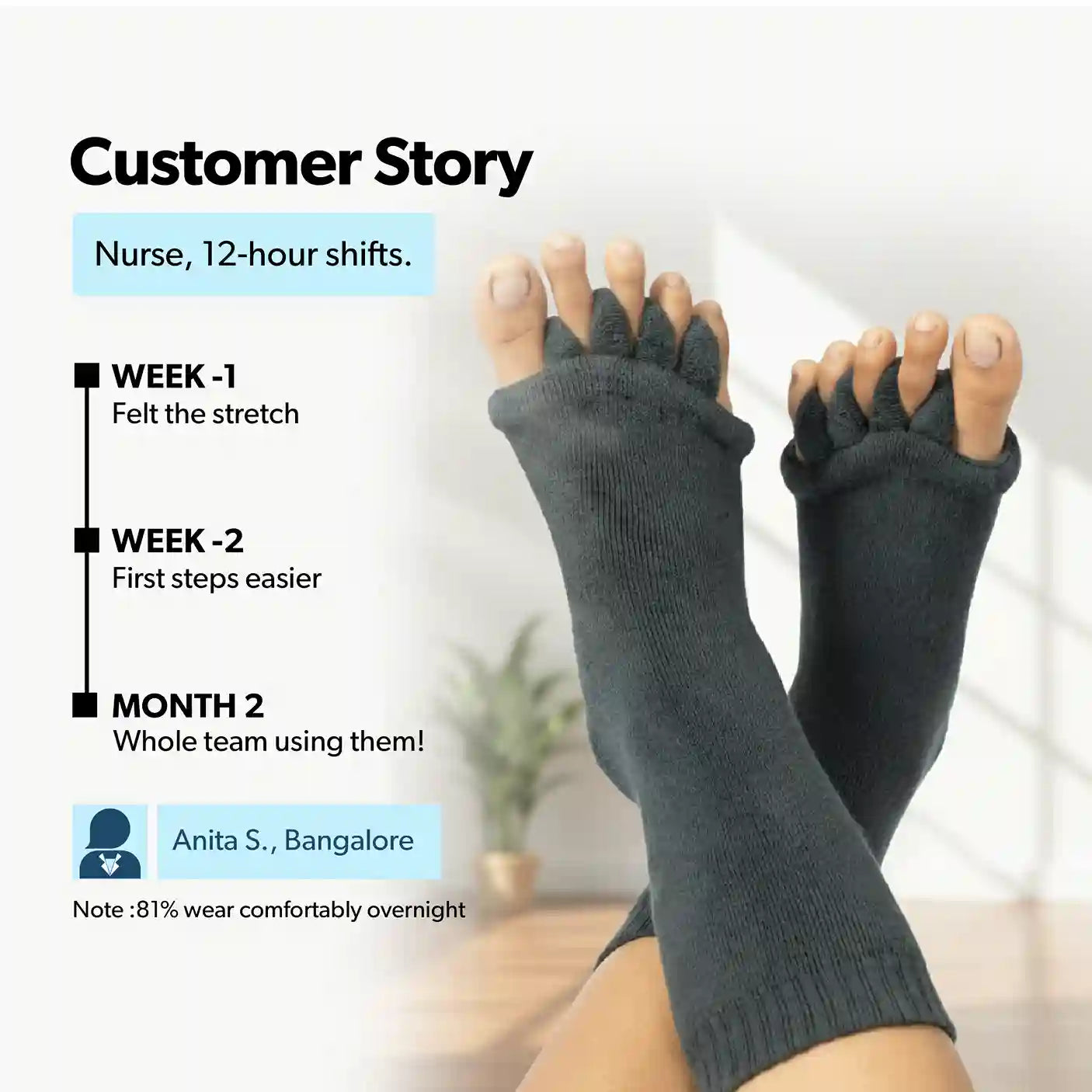 The Alignment Socks cater to individuals across all age groups. Whether you spend the day on the go, or simply seek comfort after a regular day, these socks are designed to rejuvenate your feet. By gently opening up the toes, they promote a more natural and relaxed foot posture.