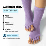 Our Foot Alignment Socks are designed to gently separate and realign toes, helping relieve pain from conditions like bunions and plantar fasciitis. Customers frequently mention noticeable pain relief and enhanced comfort from the targeted support that these socks provide.