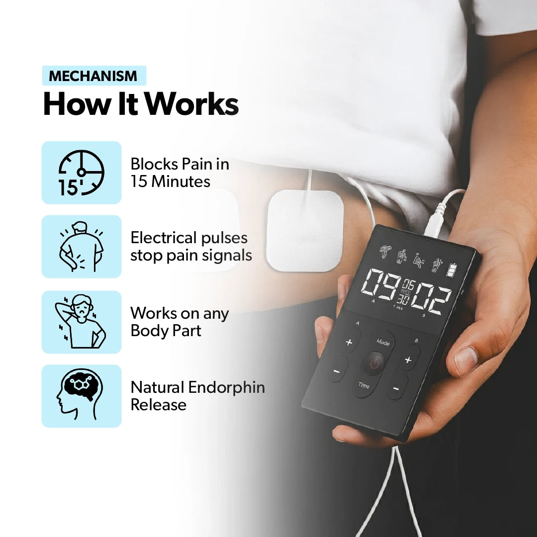 This TENS massager uses electrical impulses to stimulate your muscles, providing immediate relief right where you need it most. Whether it's sore muscles from a workout or chronic pain from sitting too long, you’ll feel the tension melt away.
