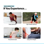 - Relieves chronic and acute pain and discomfort caused by arthritis, fibromyalgia, etc.