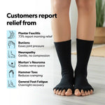 Our Foot Alignment Socks are designed to gently separate and realign toes, helping relieve pain from conditions like bunions and plantar fasciitis. Customers frequently mention noticeable pain relief and enhanced comfort from the targeted support that these socks provide.