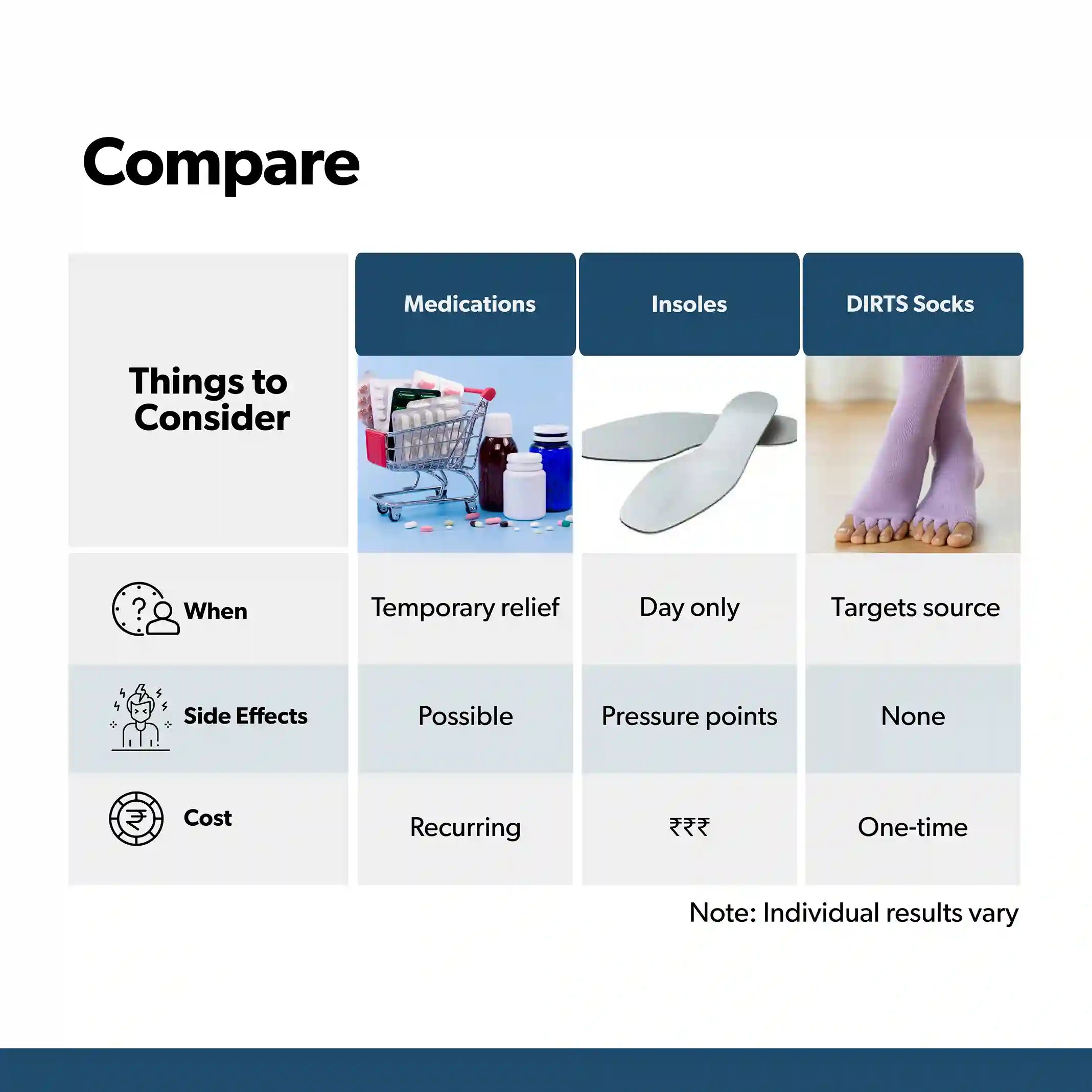 Comfort. Support. Transformation. DIRTS Foot Alignment Socks provide all-day foot alignment and pain relief, ensuring long-term health and style. Elevate your step with the ultimate in foot care.