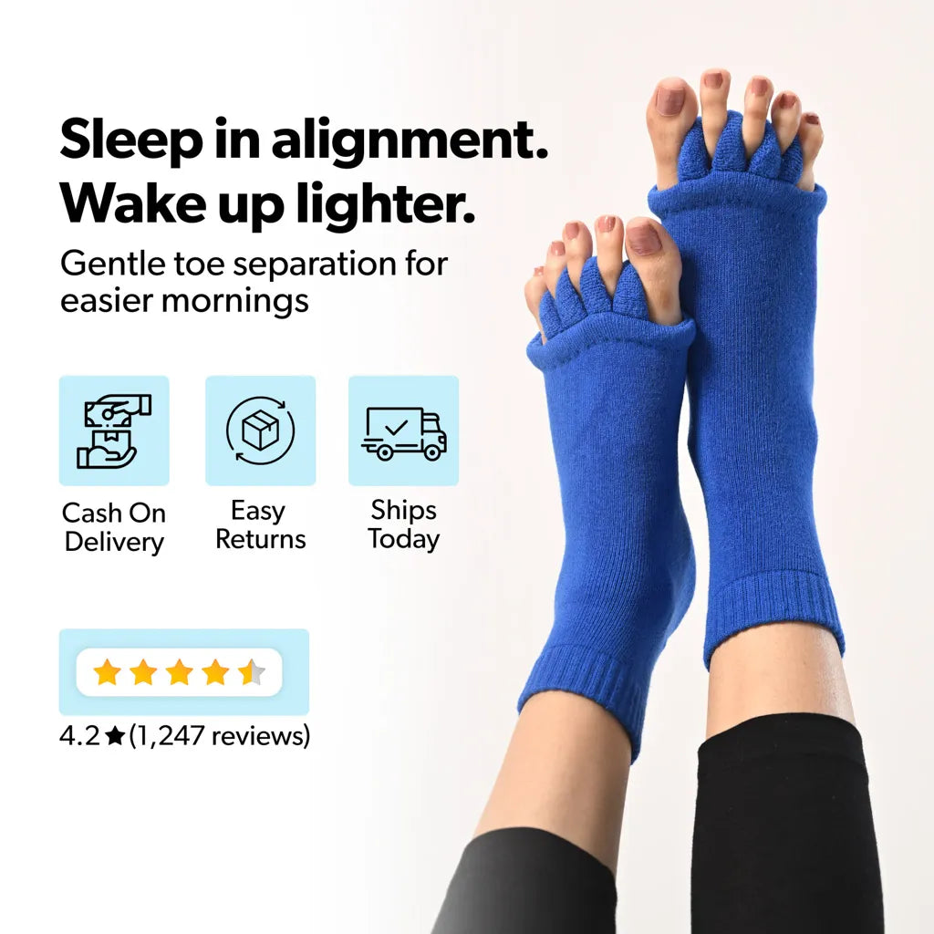 The Alignment Socks cater to individuals across all age groups. Whether you spend the day on the go, or simply seek comfort after a regular day, these socks are designed to rejuvenate your feet. By gently opening up the toes, they promote a more natural and relaxed foot posture.
