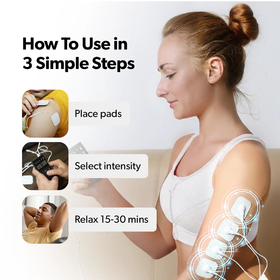 This TENS massager uses electrical impulses to stimulate your muscles, providing immediate relief right where you need it most. Whether it's sore muscles from a workout or chronic pain from sitting too long, you’ll feel the tension melt away.